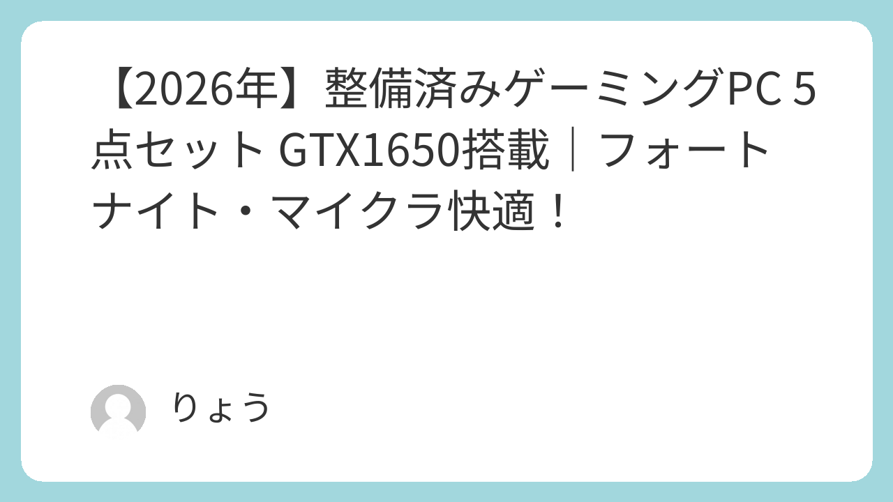 こんにちは、りょうです。今回は、初期費用を抑えつつ、人気ゲームをすぐに楽しめる【整備済み品】ゲーミングPC 5点セット GTX1650搭載 Core i5-8400 メモリ16GB SSD512GB Windows11 デスクトップ 本体・ゲーミングキーボード・マウス・ヘッドセット・WiFi付属 フォートナイト マイクラ影MOD対応、通称「【整備済み品】ゲーミングPC 5点セット」を徹底解説します。