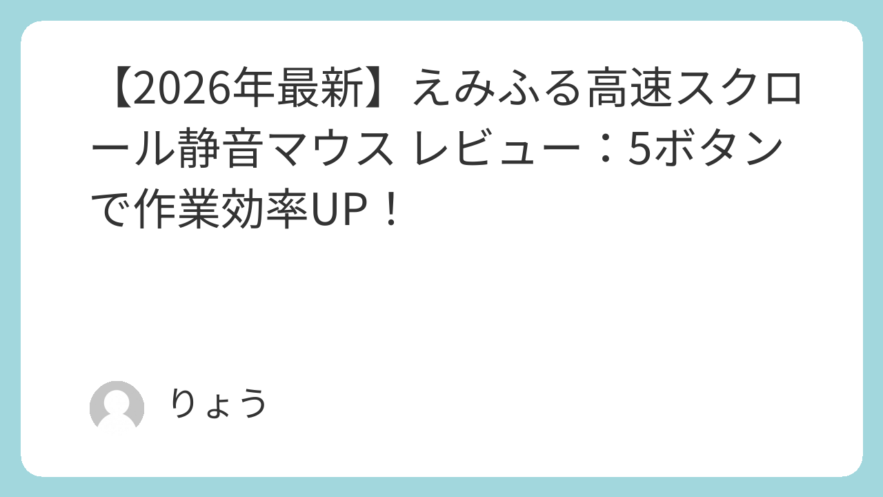こんにちは、りょうです。今回は、作業効率を大幅に向上させる可能性を秘めた「えみふる ワイヤレスマウス 高速スクロール 静音 5ボタン(戻る・進むボタン搭載) Bluetooth 無線レシーバー(2.4GHz) マルチペアリング2台 乾電池式(付属なし) emi-pm01-brwn」を徹底レビューします。
