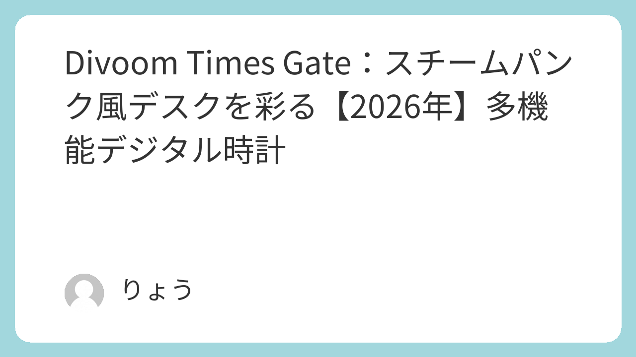 こんにちは、りょうです。今回は、PCデスクを個性的に彩るDivoom Times Gateをご紹介します。スチームパンク風のデザインと多機能性が融合したこのデジタル時計は、単なる時間表示だけでなく、天気予報やSNSのフォロワー数表示など、様々な情報を表示できるユニークなガジェットです。