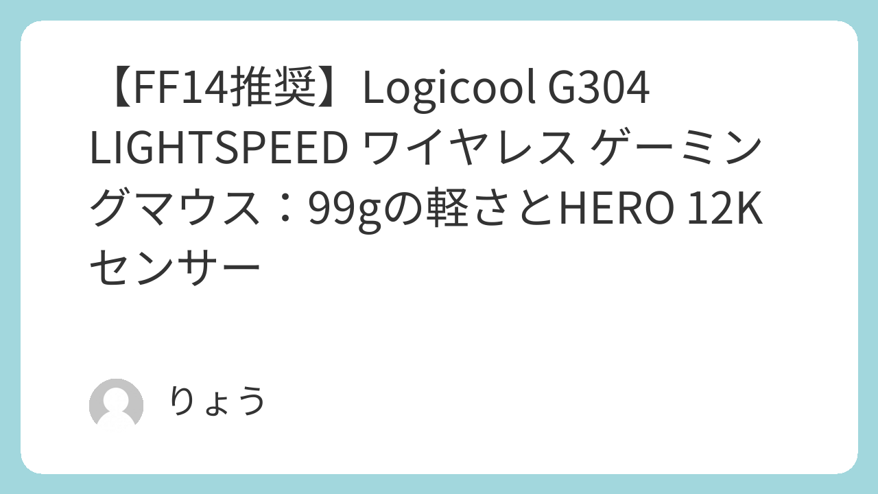 こんにちは、りょうです。今回は、Logicool Gから発売されている「Logicool G ゲーミングマウス G304 LIGHTSPEED ワイヤレス ゲーミング マウス 軽量 99g HERO 12Kセンサー 6個プログラムボタン 250時間連続使用可能 ブラック PC windows mac 国内正規品 【 ファイナルファンタジー XIV 推奨モデル 】」について徹底解説します。特に、FF14プレイヤーにとって最適な理由や、その驚くべき性能について深掘りしていきます。